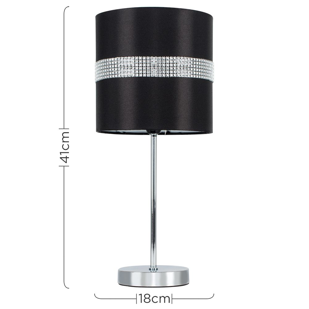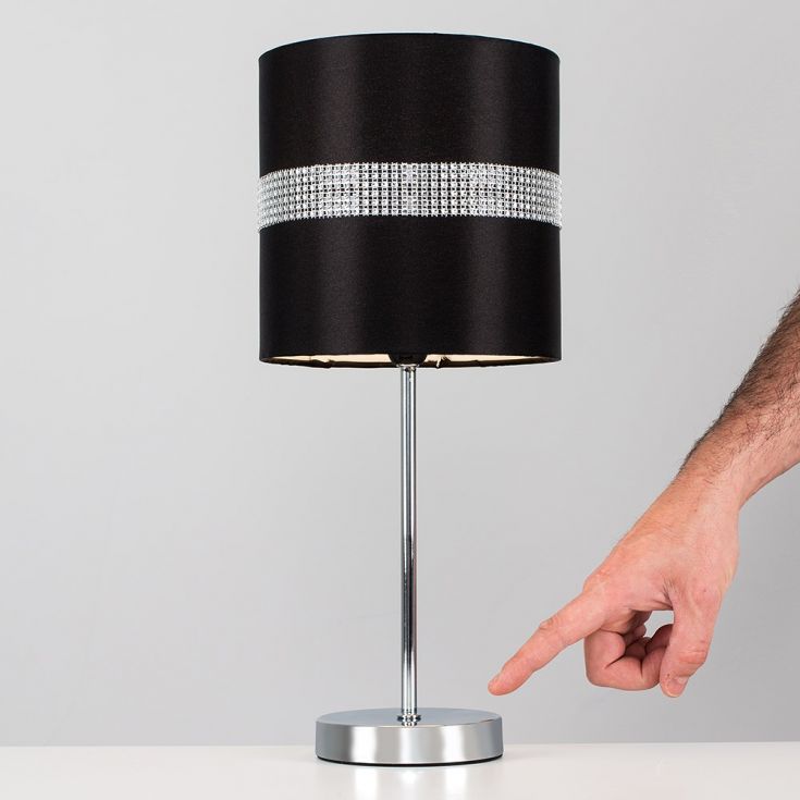 Diamante Chrome and Black Touch Table Lamp